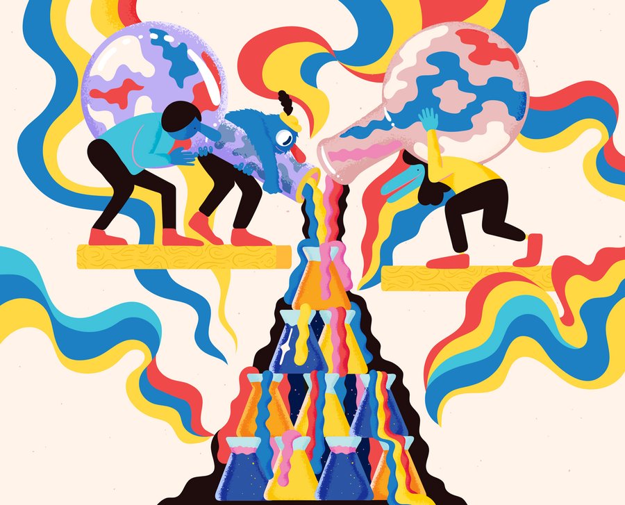 Brolga crafts captivating worlds filled with vibrant colors, abstract patterns, and peculiar creatures. His artistic prowess, honed through a background in graphic design, invites us on a journey alongside these surreal yet comforting beings. Brolga is a versatile illustrator, collaborating with prominent brands such as Apple, Facebook, and The New York Times. He's also renowned for his murals that seamlessly blend into urban life, bringing the city streets to life