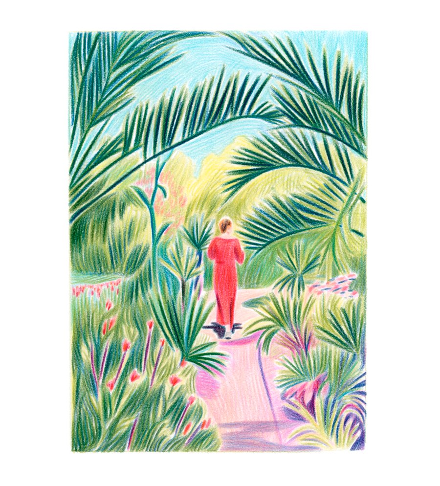 Caroline Péron is much more than an illustrator artist, she dances with color, shadow, and light. Her illustrations immerse us in realms where sun, nature, and bodies converge beneath the perpetual movement of her pencil stroke.
