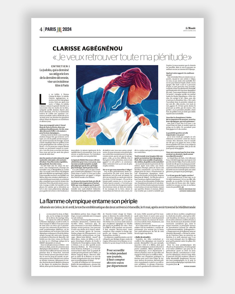 Illustrations de la judoka Clarisse Agbégnénou, pour le journal Le Monde.