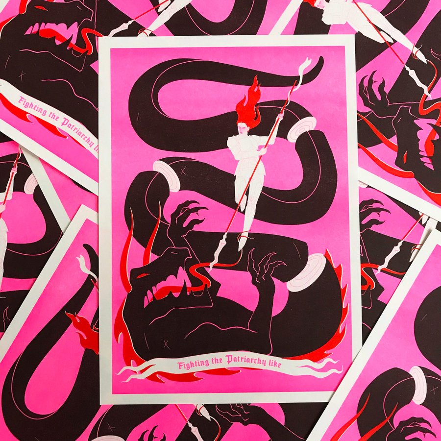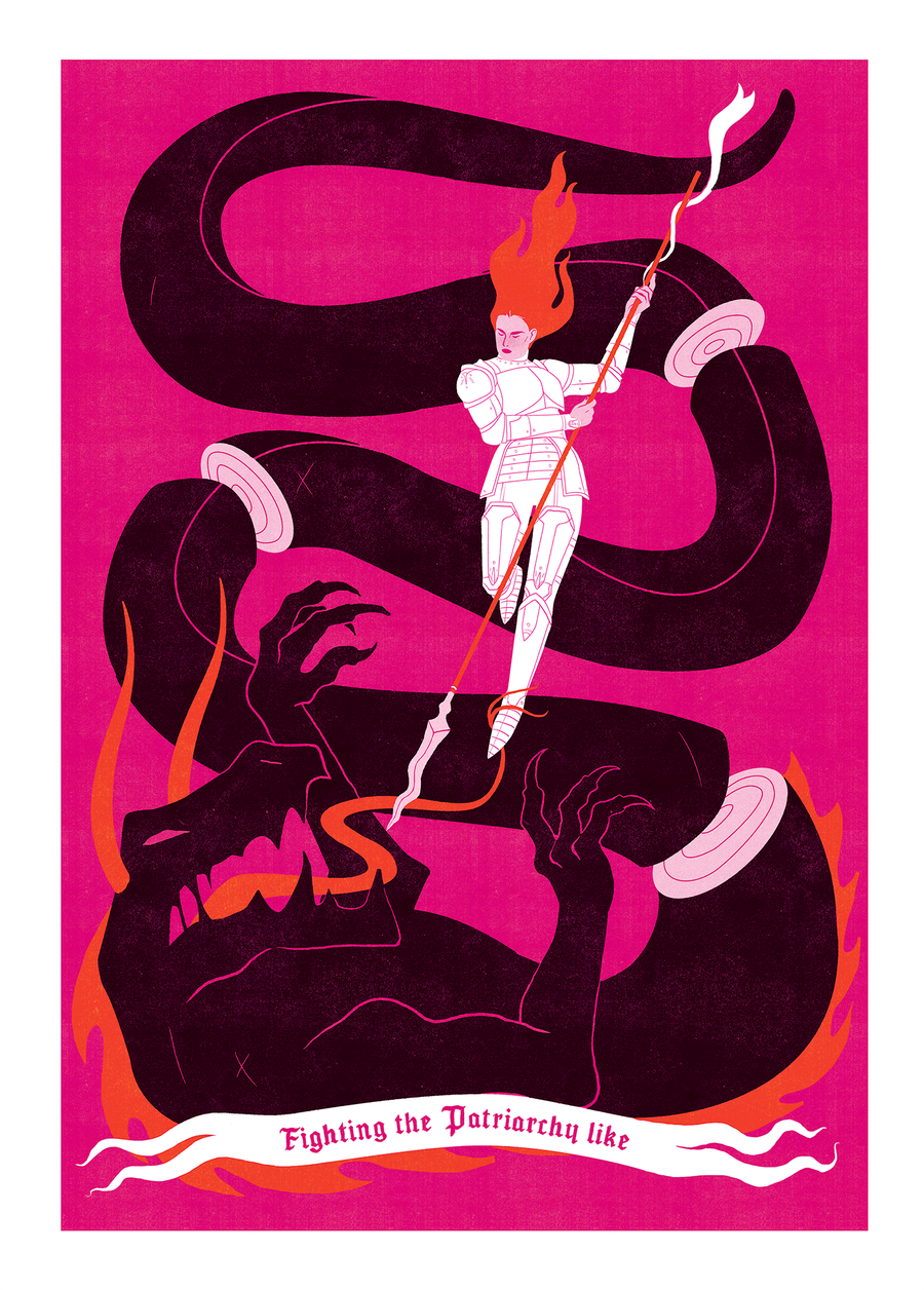 Illustration and risoprint for Dames Zine, a collective artbook about women in chivalry.