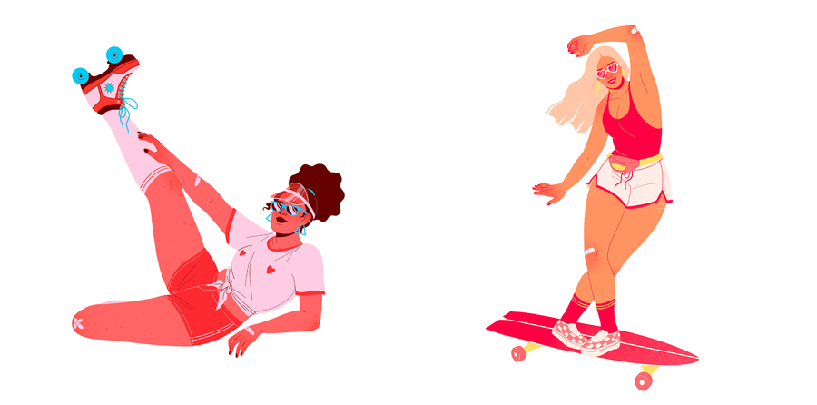 I went for summery 90s patterns inspired by these badass Californian girls taking over skateparks and rolling their way to the top. When I started longboarding, and later roller skating, I felt incredibly free. Of course physical freedom as the sensations are amazing, but also mental freedom as it helped me change the way I apprehend public space as well as my own body. It is an empowering story of reappropriation and freedom, and I think it suits Light & Free’s spirit of "living your life fully and doing you".