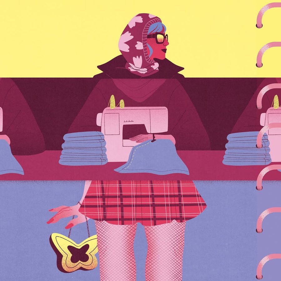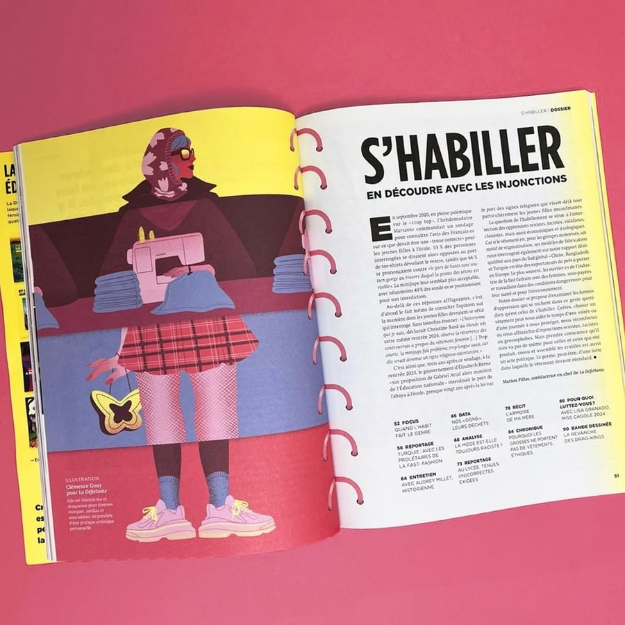 New opening illustration for La Déferlante's issue about clothes, in all their complexity: gender identity, environmental issues, production conditions, sizing…