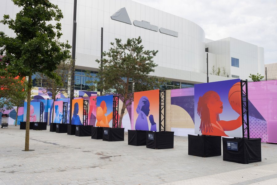 This installation features 8 women athlete portraits, pros or locals, past or present, all contributing to French sport and paving the way for future generations. Featured : Colette Besson (400m), Jo Agnês (capoeira), Béatrice Hess (swimming), Céline (football), Océane (basketball), Diana Gandéga (basketball), Romane Dicko (judo), Myriam (wheelchair basketball).