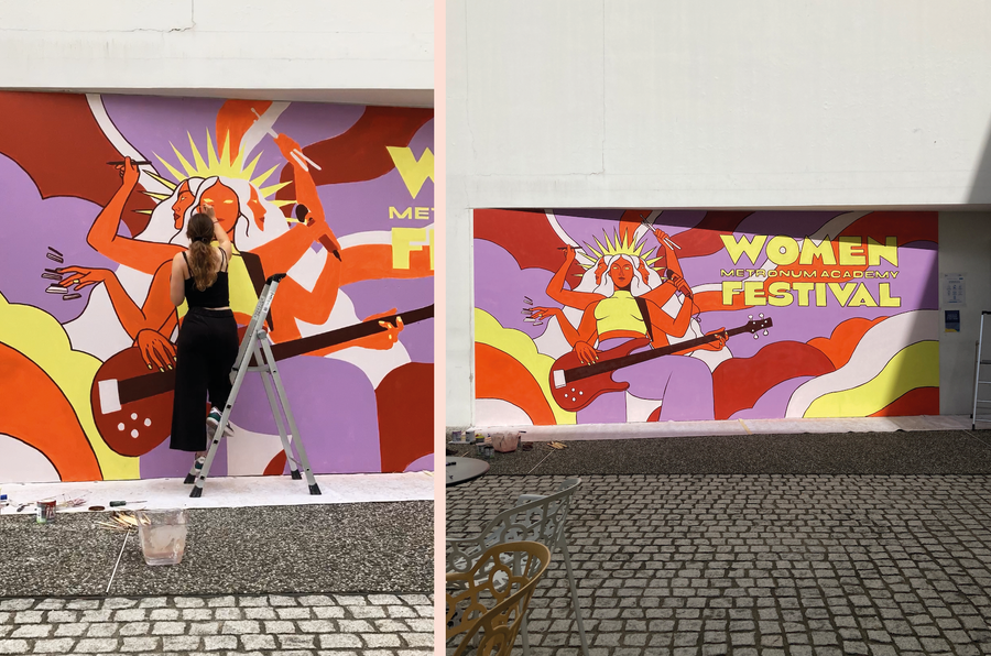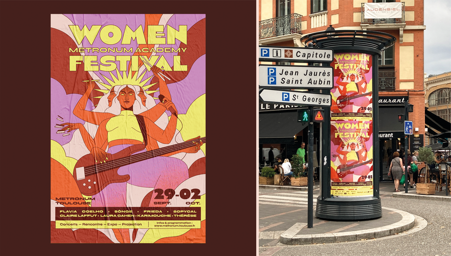 Illustration, identity, poster design and mural for the first edition of the Women Metronum Academy Festival in Toulouse, France