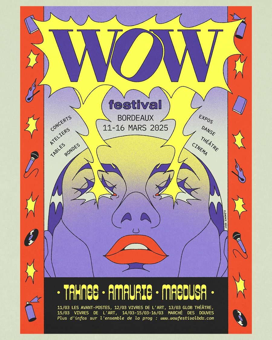Poster drew for the 4th edition of the Wow Festival that takes place in Bordeaux between the 11th and the 16th of March 2025.