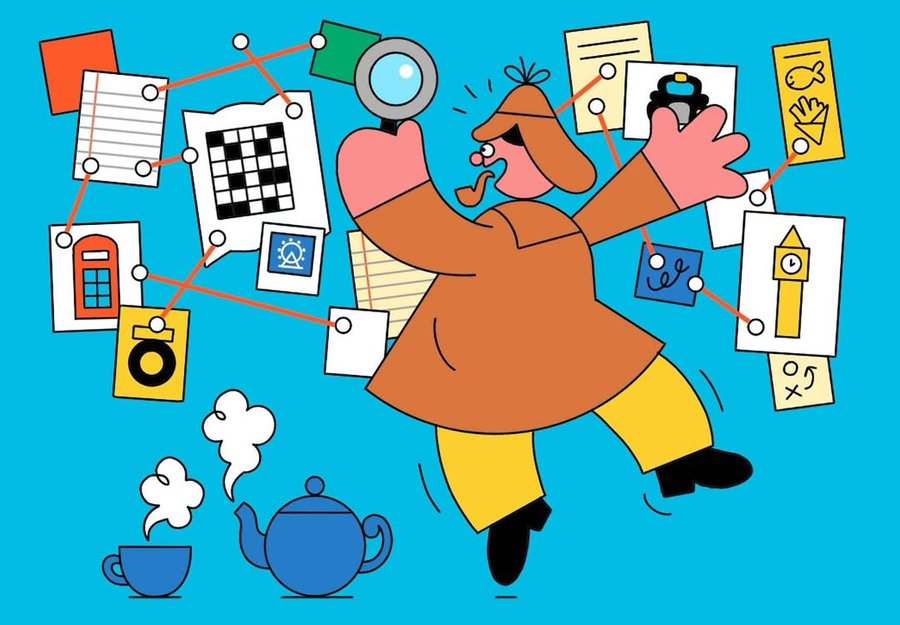 Illustration for the Financial Times Weekend about the tricky but addictive world of cryptic crosswords.