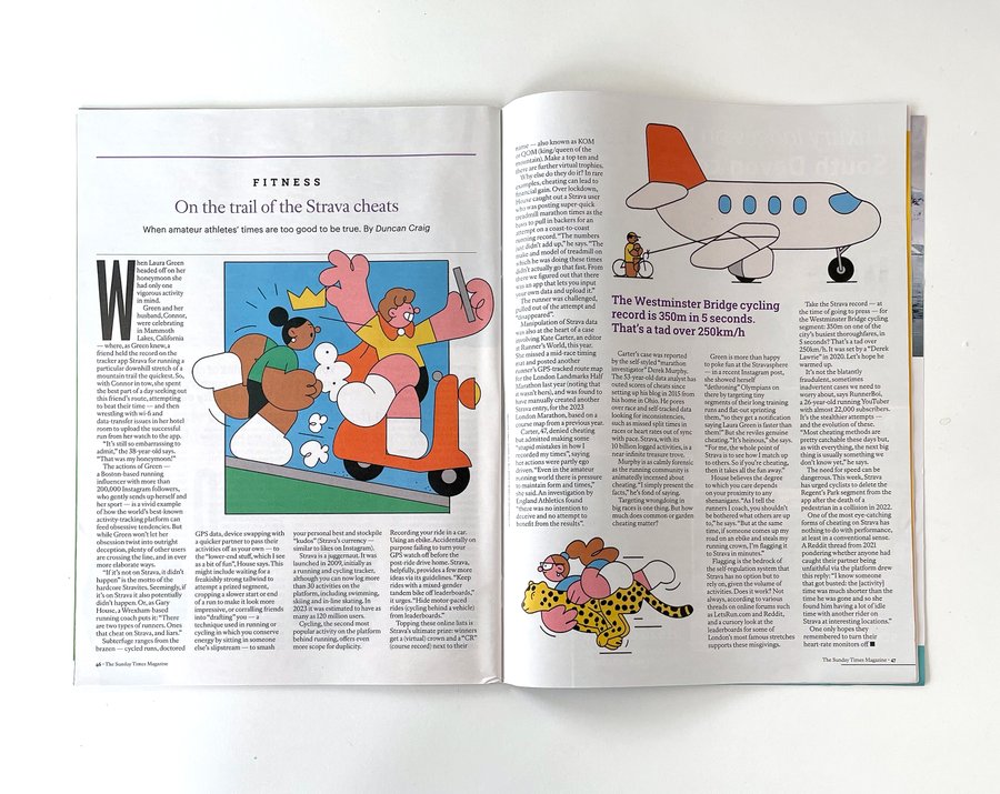 Still and animated illustrations for the article "Inside the murky world of the Strava cheats"
