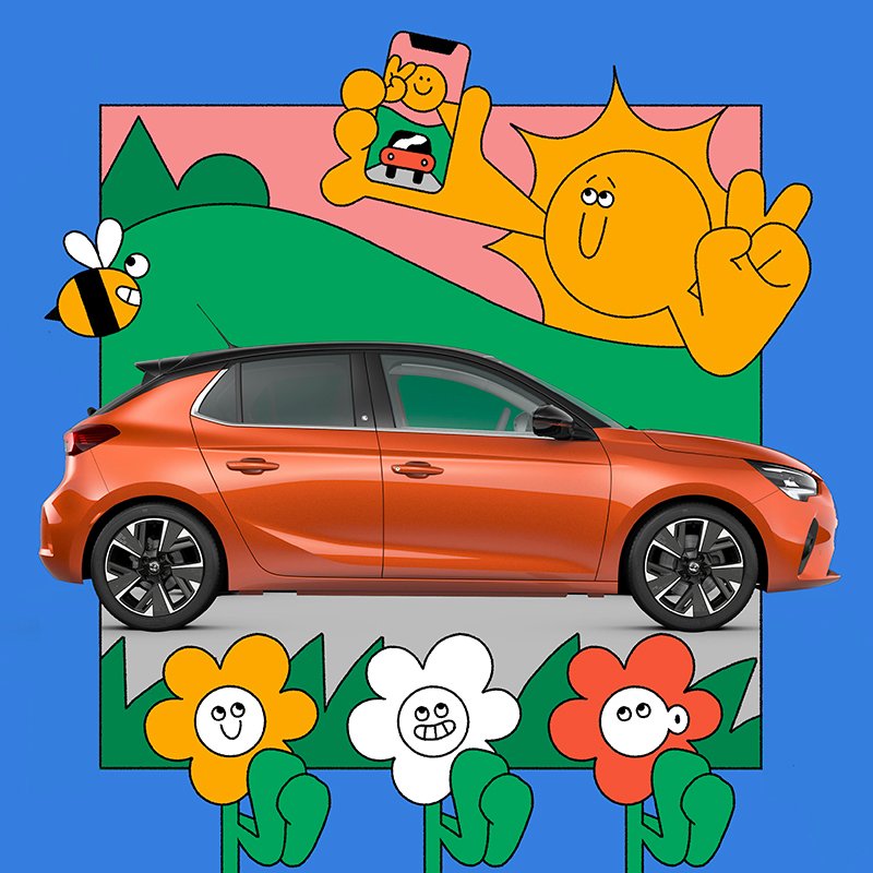 A collaboration with 23 other artists to create an animated loop of the new Vauxhall Corsa-E