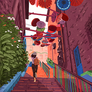 As true naturalist of modern times, Fagostudio explores, digs and samples the world to capture it in images where the second shots are as detailed as the first, where light gently reveals the folds of a fabric, the relief of a mountain or the movements of a hair... The ease with which this trio of illustrators takes us out into the streets of London in the 19th century, on horseback in the Jordanian desert or in the sky with exotic birds, will always surprise us.