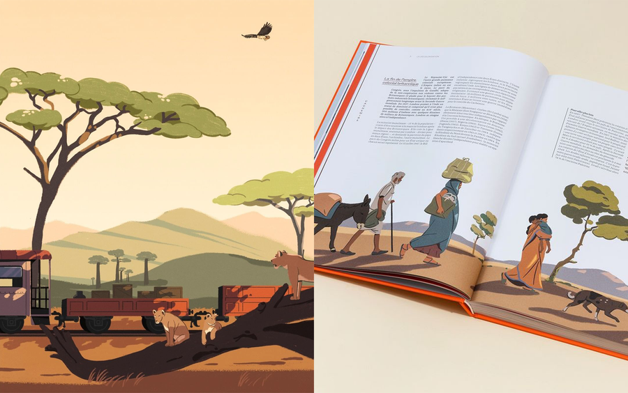 As true naturalist of modern times, Fagostudio explores, digs and samples the world to capture it in images where the second shots are as detailed as the first, where light gently reveals the folds of a fabric, the relief of a mountain or the movements of a hair... The ease with which this trio of illustrators takes us out into the streets of London in the 19th century, on horseback in the Jordanian desert or in the sky with exotic birds, will always surprise us.