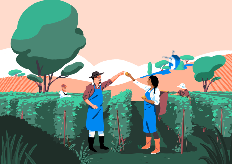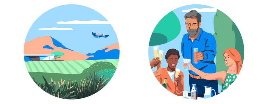 Collaboration with the brand Pernod Ricard to create illustrations about some topics: Naturing terroir, valuing people, circular making, responsable hosting… Great project that talks about nature and wellness.