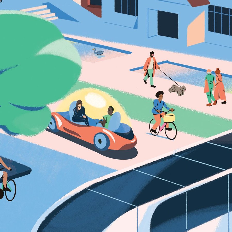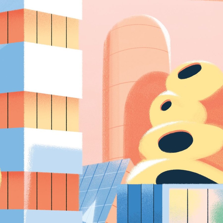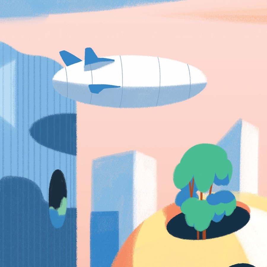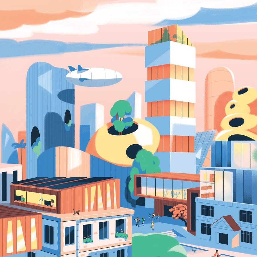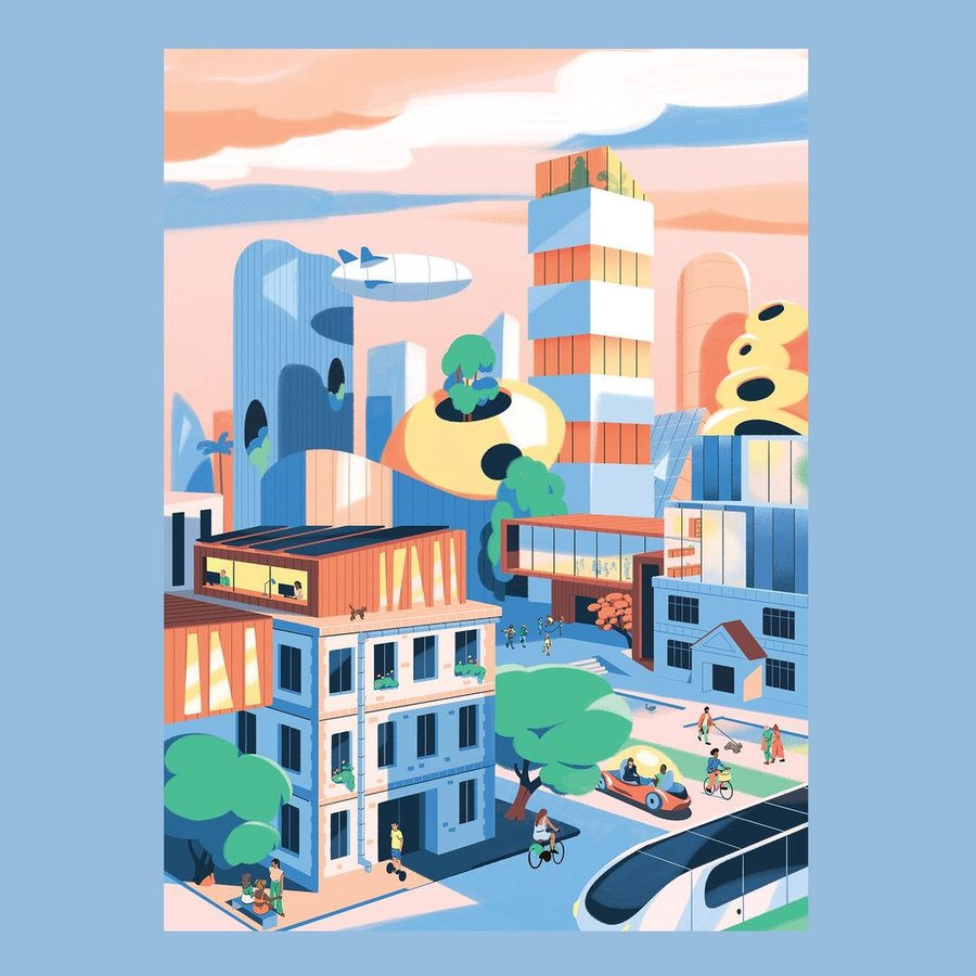 Illustration of an utopian city for 2050, created for Usbek & Rica magazine in collaboration with Saint-Gobain group