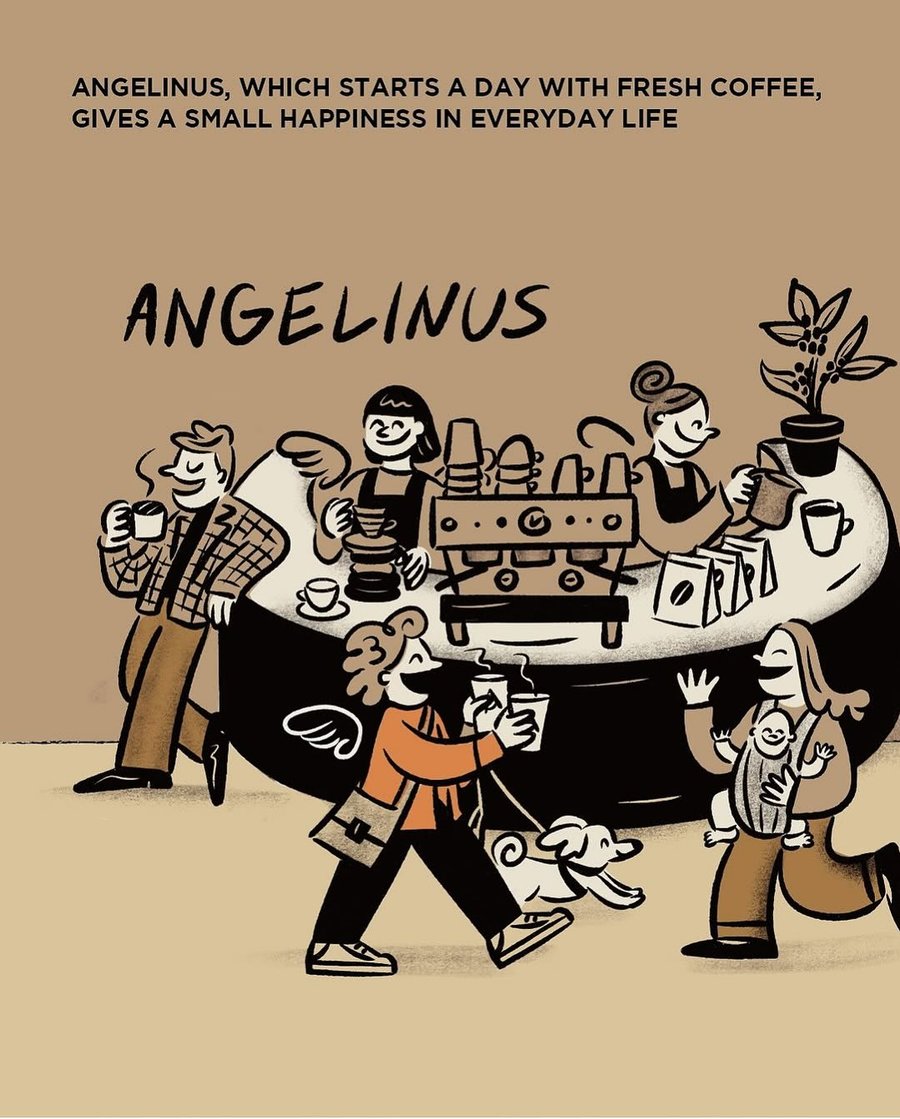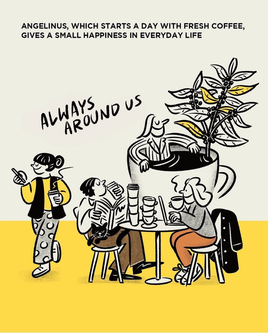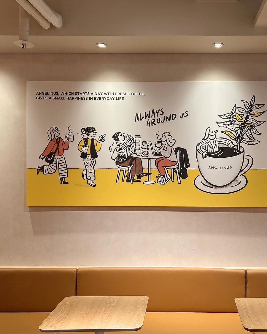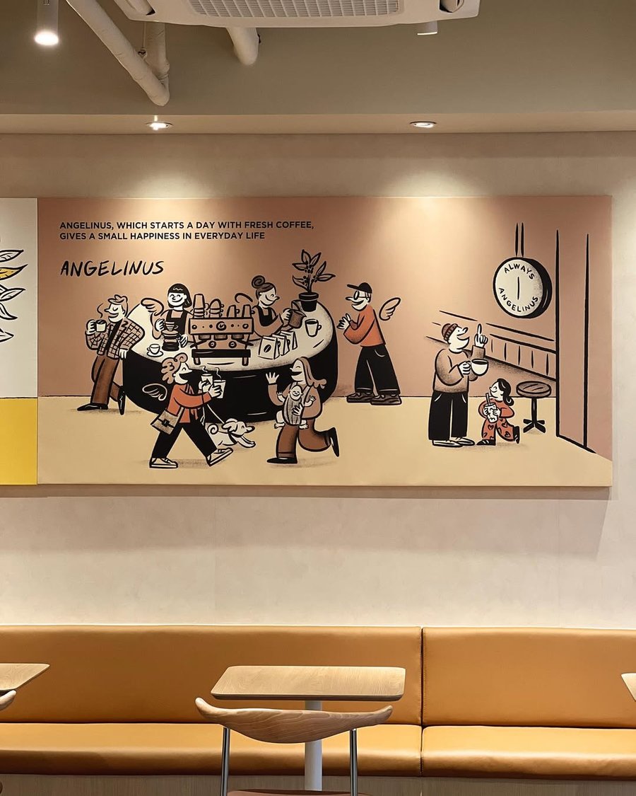 Maria's illustrations displayed at Angelinus Coffee in Seoul, South Korea.
