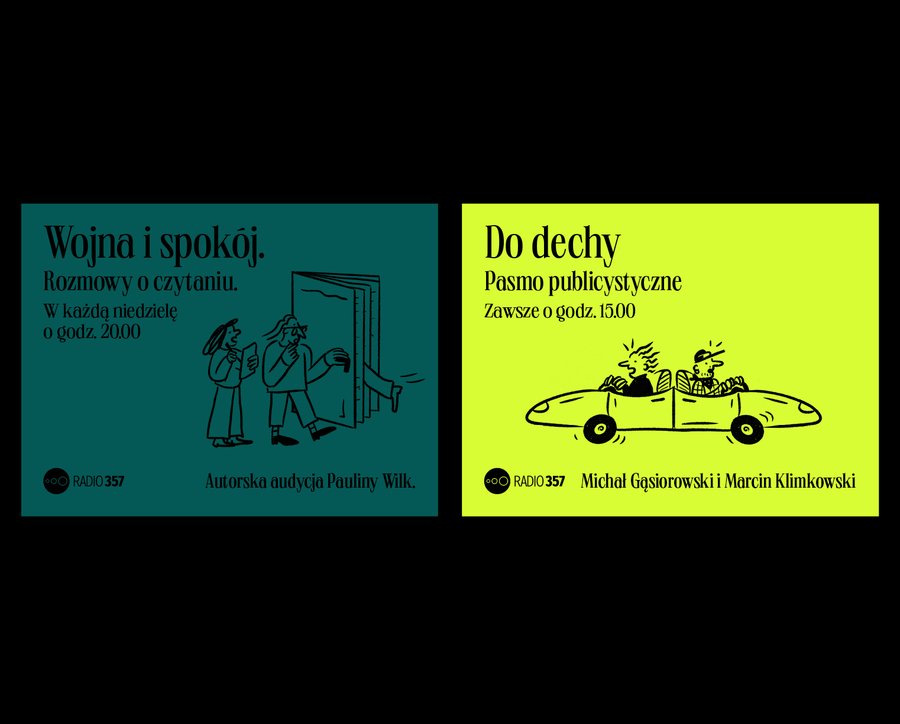 Cheeky and satirical illustrations, to represent everyday topics addressed by the station. Radio 357 is cheerful, informative and objective. With characteristic illustrations they are breaking patterns and can not be confused with anything else.