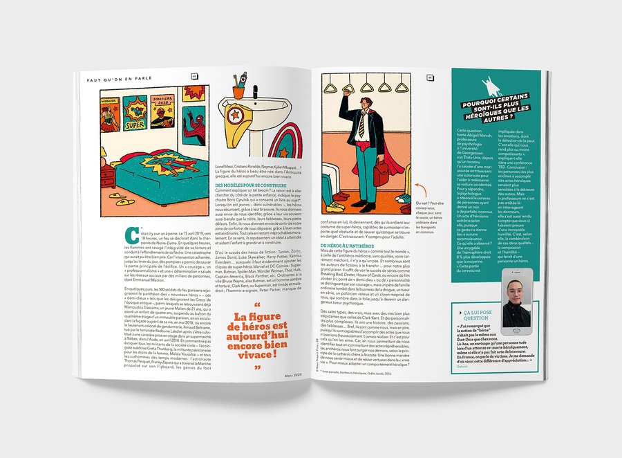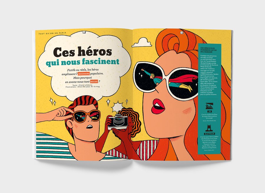 Illustrations éditoriales pour l'article sur "Ces héros qui nous fascinent" du magazine Air le Mag de mars 2020.