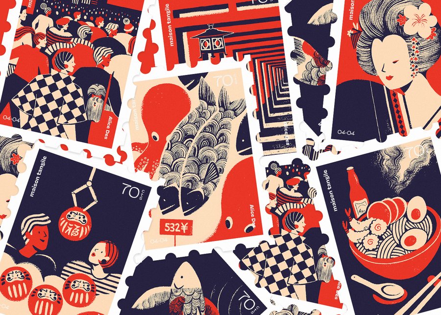 Gouache series created for Maison Tangible ‘ s « interview timbrée ».