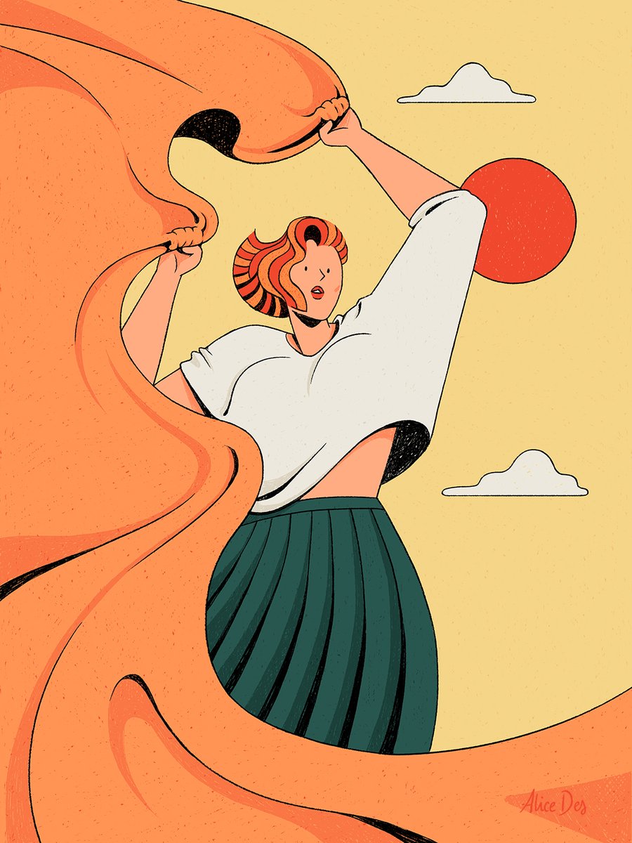 Bien que le style d'Alice Des, avec son trait affirmé, ses couleurs contrastées, ses silhouettes plantureuses aux tailles fines et aux cheveux gaufrés, puisse faire référence au style rétro des années 50, la Femme d'Alice Des est loin d'être la docile ménagère cantonnée au bien être de son mari et enfants. Elle est charismatique, belle, volontaire, maîtresse de sa féminité et de sa vie. D'ailleurs Alice ne renie en rien son engagement pour les sujets féministes, qui lui permettent, en utilisant tous les supports mis à sa disposition, d'être en phase avec sa génération et son époque.