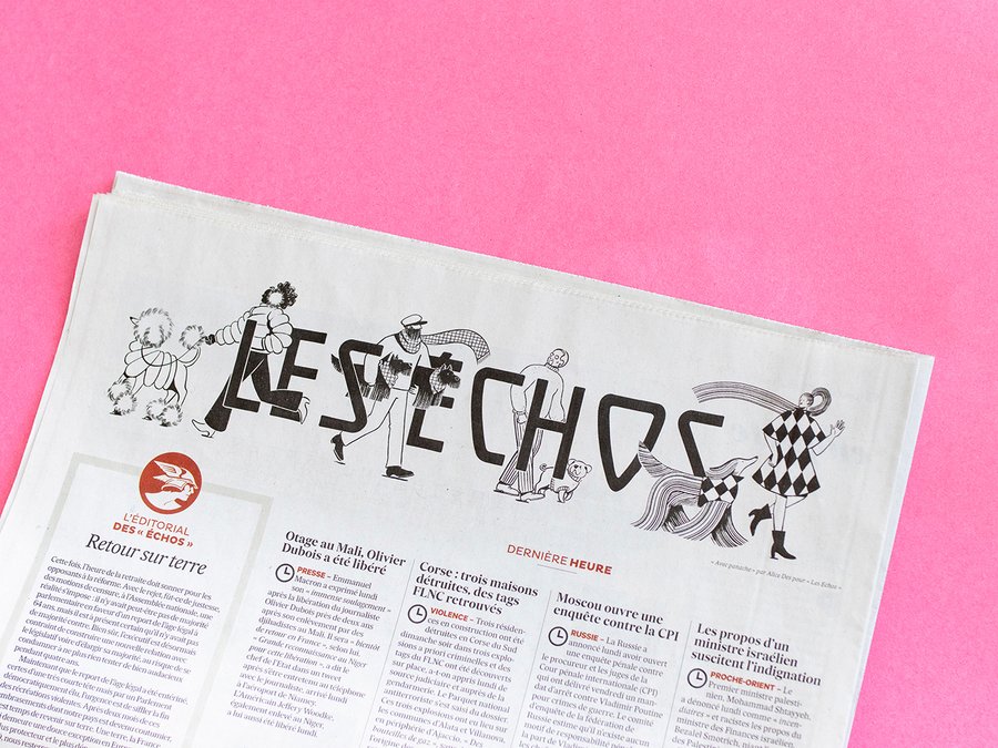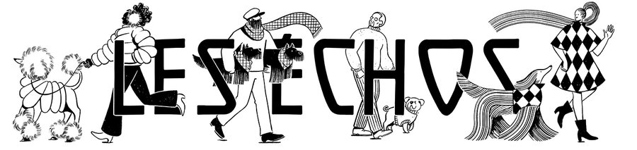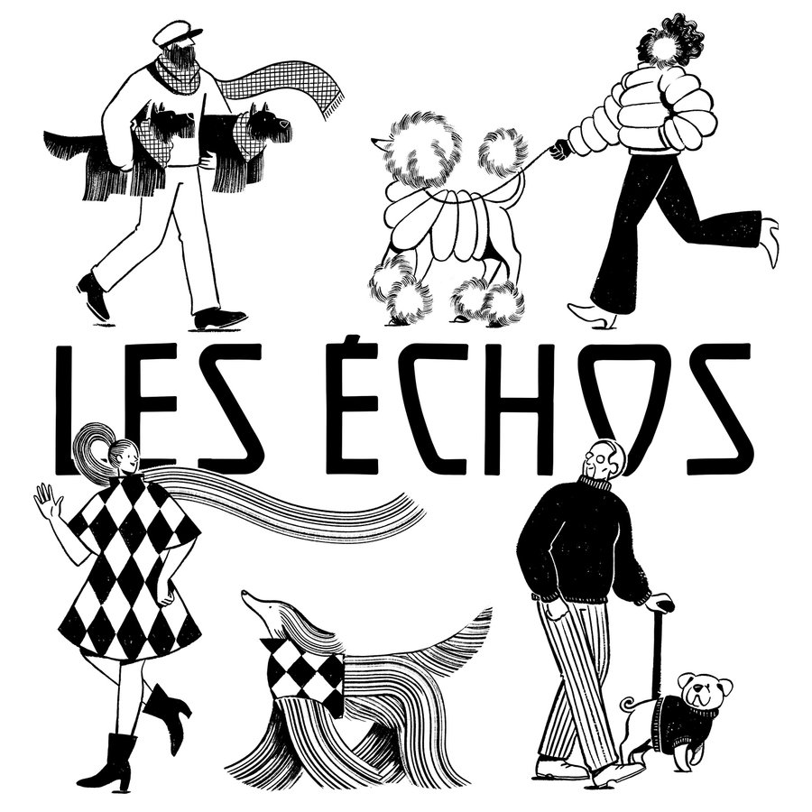 Logo illustré des Echos, sur le thème de la promenade des chiens.