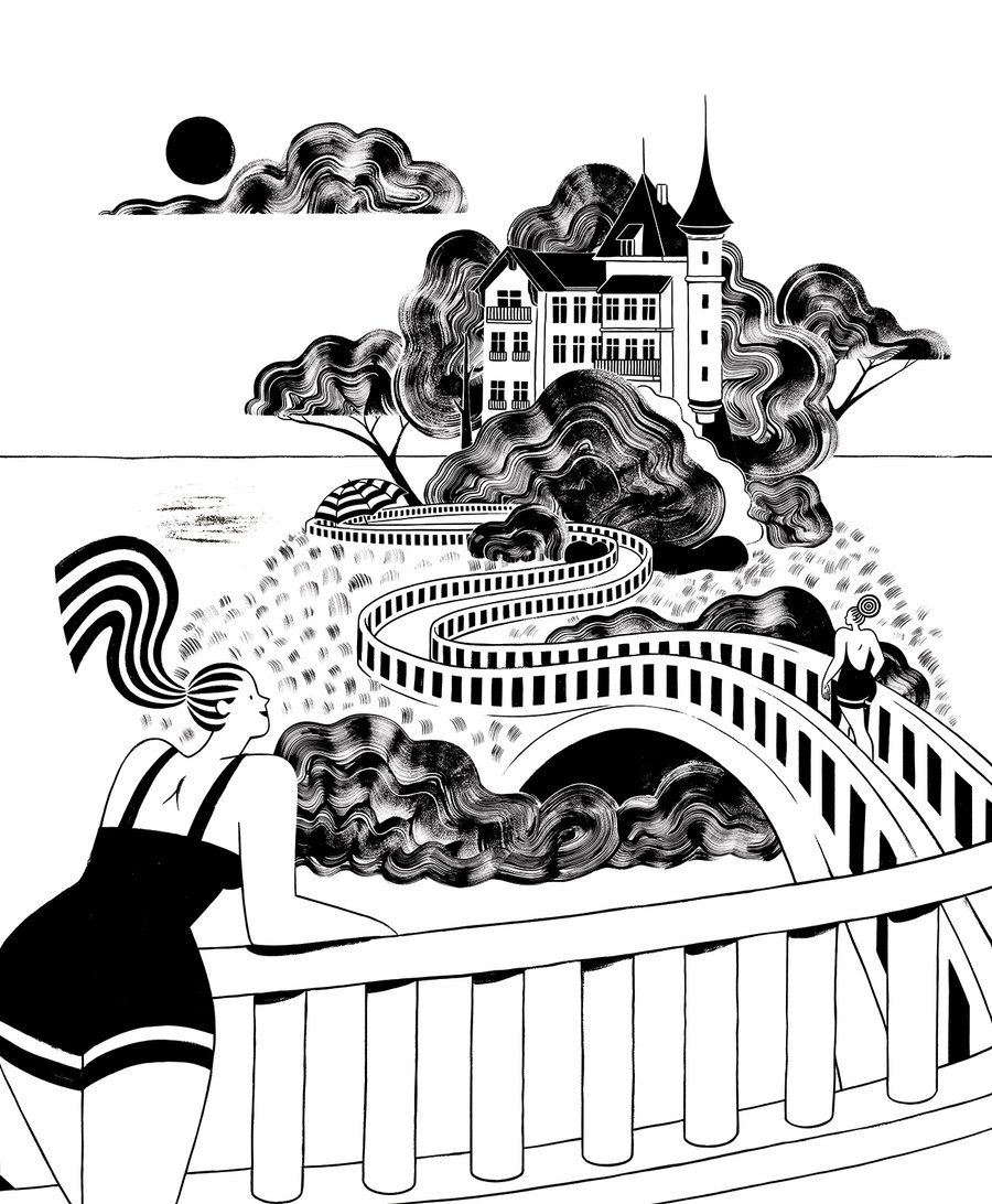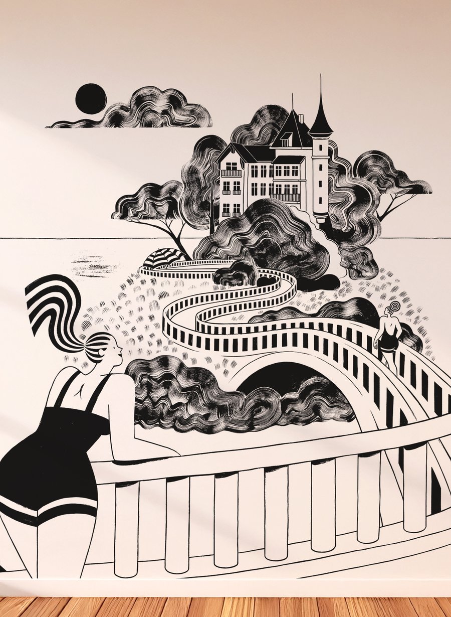 Peinture en grand format pour la création d'un papier peint sur Biarritz