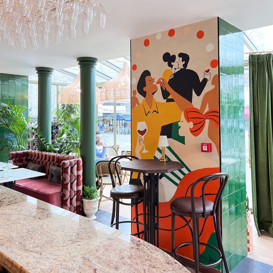 Live painting of a fresco during the launch party of the Spanish wine cave Montijo in Paris.