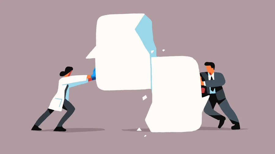 Illustration for the article "Biologists: when financialization interferes even in contractual dialogue" by Contexte magazine