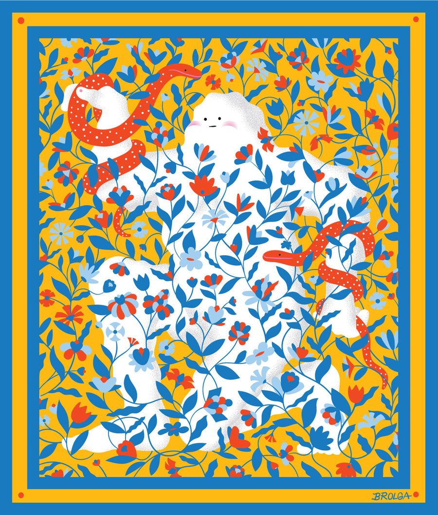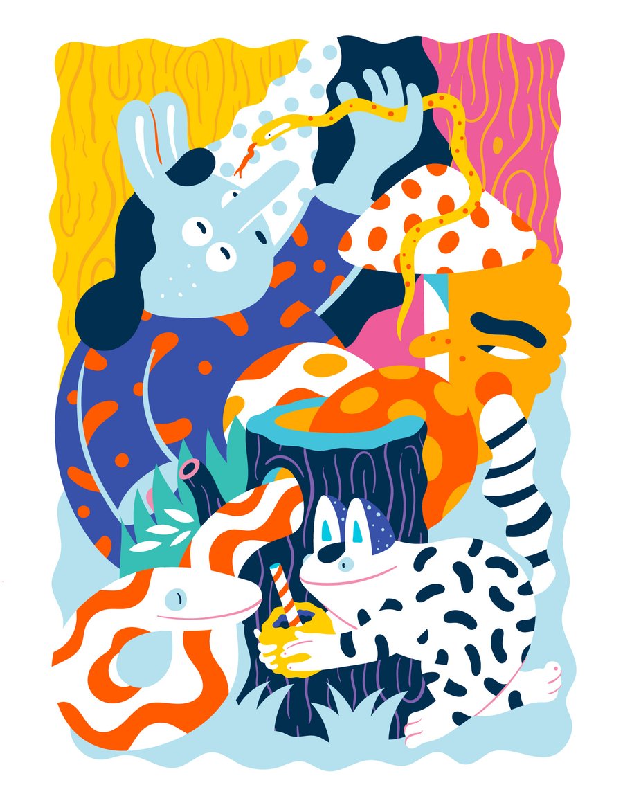 Brolga crée des mondes fascinants, remplis de couleurs vives, de motifs abstraits et de créatures étranges. Son talent artistique, nourri par son expérience en graphisme, nous emmène dans un voyage aux côtés de créatures surréalistes, à la fois étonnantes et réconfortantes. Brolga est un illustrateur polyvalent, travaillant avec de grandes marques comme Apple, Facebook et le New York Times. Il est également reconnu pour ses fresques murales qui s'intègrent à merveille dans la vie urbaine, donnant vie aux rues de la ville.