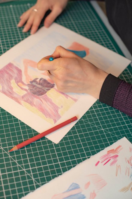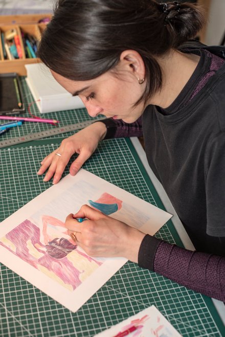 Caroline Péron est bien plus qu'une artiste illustratrice, elle danse avec la couleur, l’ombre et la lumière. Ses illustrations nous plongent dans des univers où le soleil, la nature et les corps s’unissent sous son crayon dans un perpétuel mouvement.