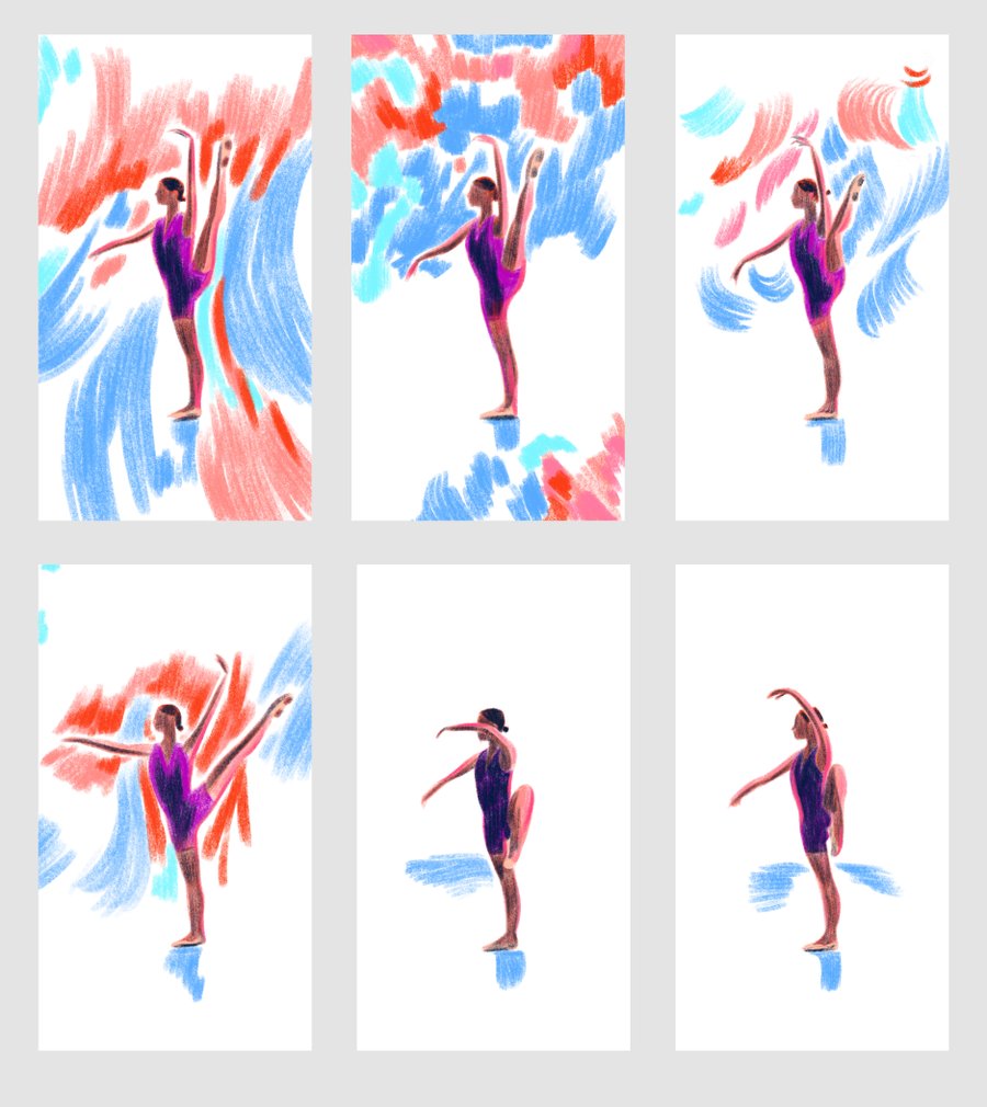 Personal creation of an animation of a dancer in coloured pencil.