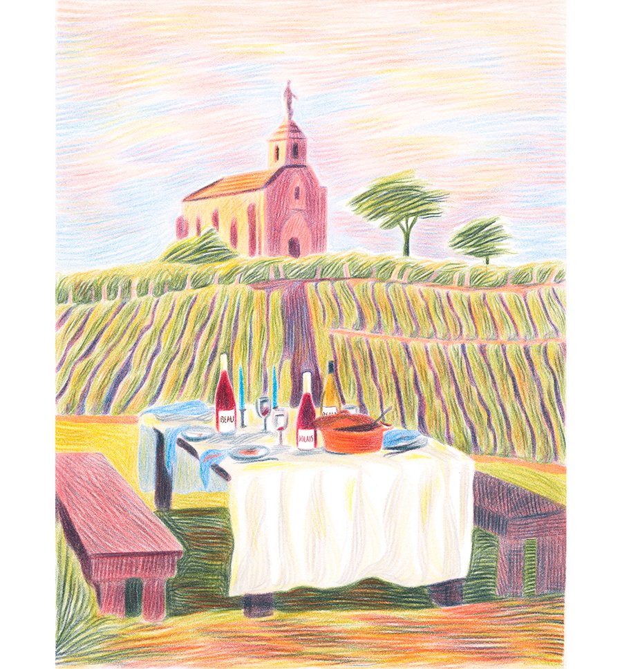 Illustration réalisée pour le guide français Fooding 2023, paru en novembre 2022 pour la publicité de la marque Beaujolais.