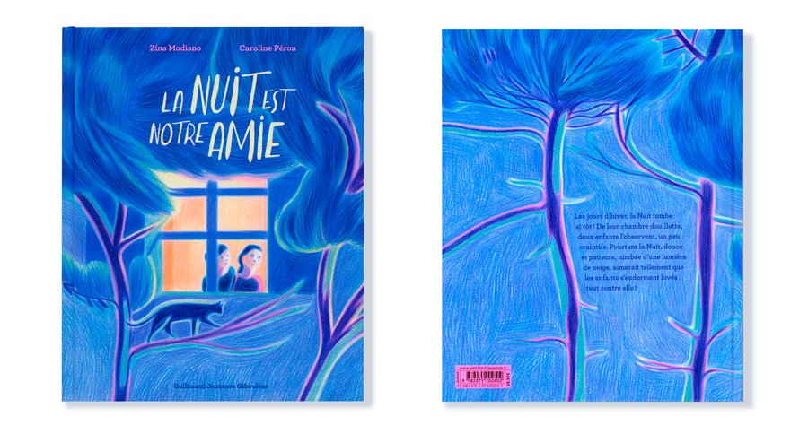 Caroline Péron's first illustrated kids' book "La nuit est notre amie" written by Zina Modiano.