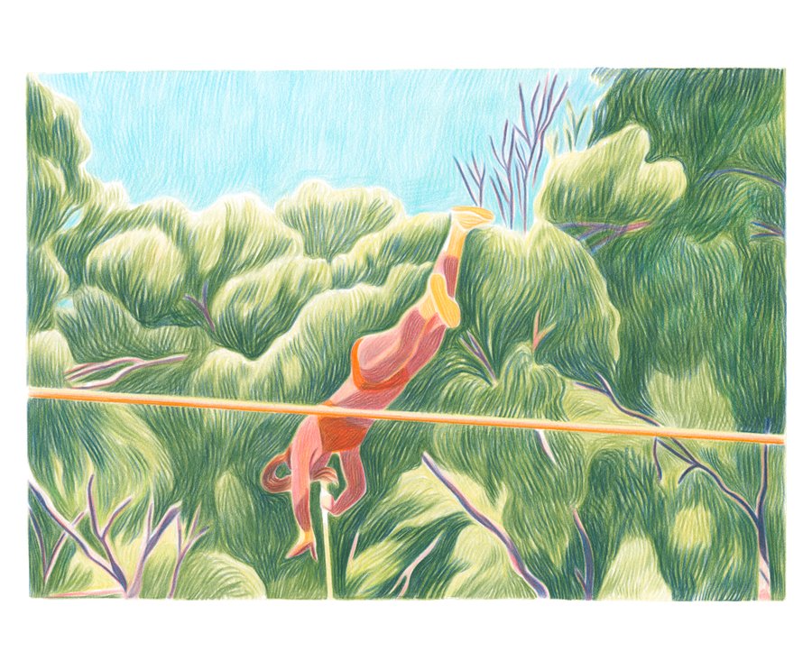 Caroline Péron est bien plus qu'une artiste illustratrice, elle danse avec la couleur, l’ombre et la lumière. Ses illustrations nous plongent dans des univers où le soleil, la nature et les corps s’unissent sous son crayon dans un perpétuel mouvement.