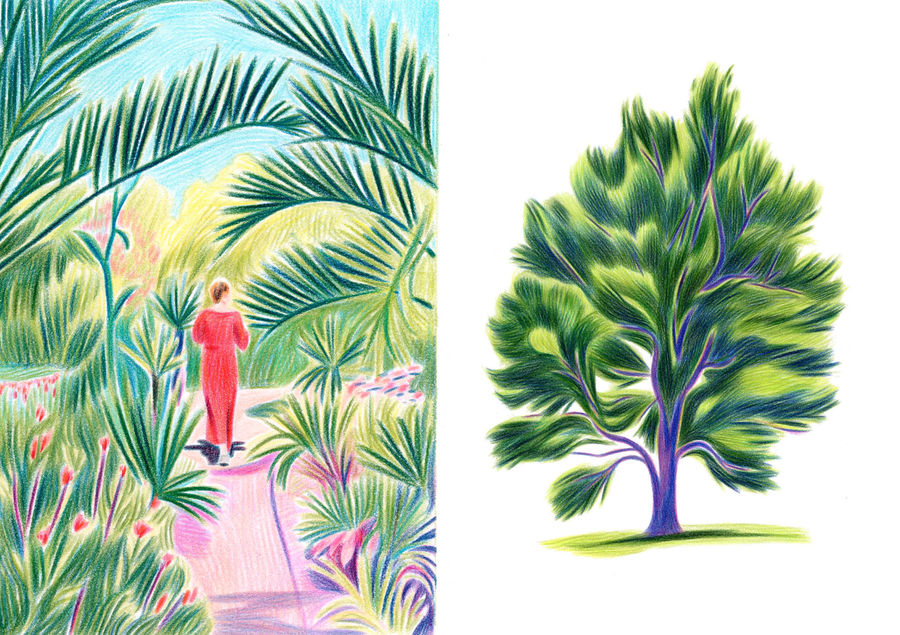 Caroline Péron est bien plus qu'une artiste illustratrice, elle danse avec la couleur, l’ombre et la lumière. Ses illustrations nous plongent dans des univers où le soleil, la nature et les corps s’unissent sous son crayon dans un perpétuel mouvement.