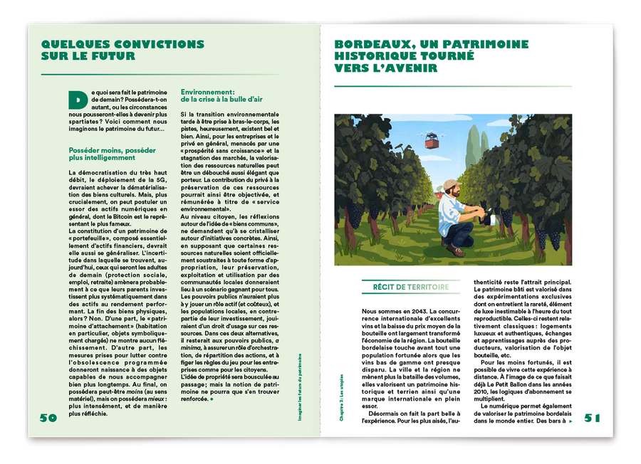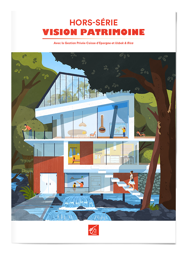 Illustration pour le magazine Vision Patrimoine de La Caisse d'épargne dans le cadre d'une collaboration avec le magazine Usbek&Rica à propos des patrimoines du futur.