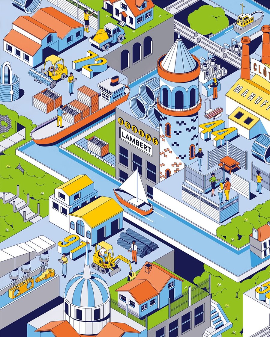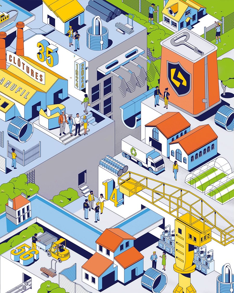 Illustrations created for Lambert Group & Lambert Clotures for their 100th anniversary of passion for steel wire.