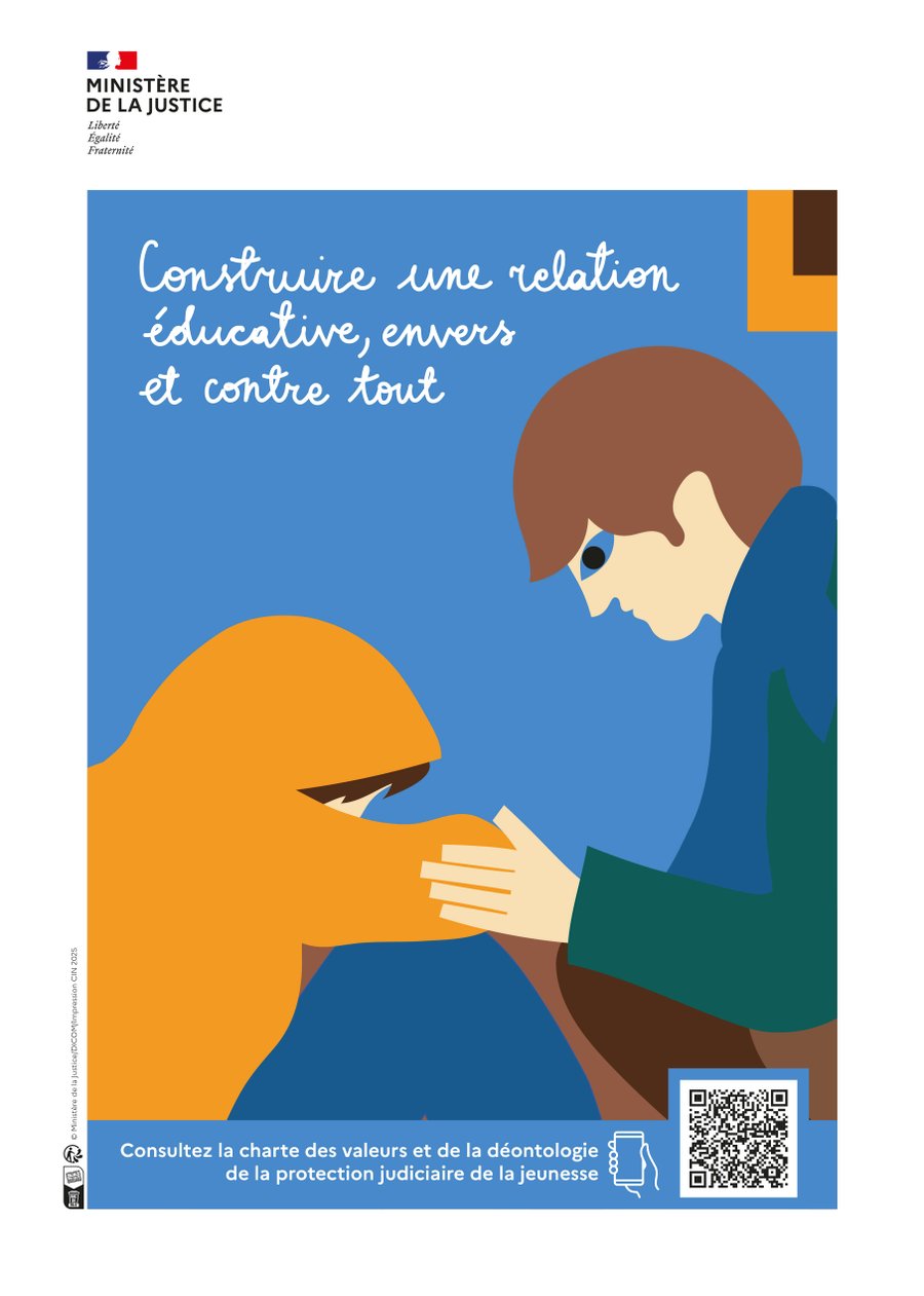 The posters are displayed in youth justice centers and institutions across France, communicating the key principles of the charter in a clear, human, and accessible way.