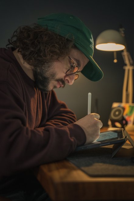 Louis Torres tricote ses personnages, une jambe en avant, une jambe en arrière, un bras dessus, un bras dessous. Sous cette apparente désinvolture, Louis attache une grande importance au stylisme de ses personnages dégingandés, les accessoirisant avec soin. Son travail fusionne sa passion pour la mode, son talent d’illustrateur et son sens du détail. Aplat, digit painting, ligne claire... quel que soit le traitement graphique éclairé de cette lumière veloutée aux couleurs chaudes et texturées, son style reste aussi distinctif, que captivant et unique.
