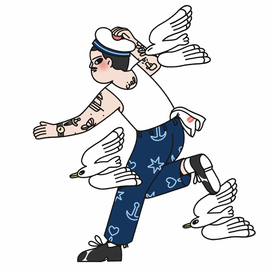 Character/logo designed for an event organised by secondhand shops in Rouen for the Armada 2023