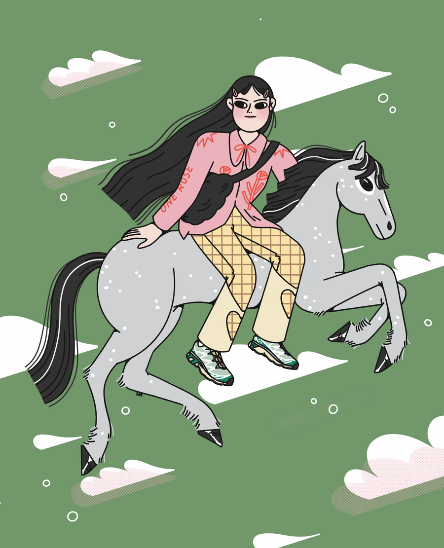 Louise Humbert est une jeune illustratrice française basée à Rouen. En à peine deux ans, elle a su imposer un style doux, épuré et expressif en créant son propre univers visuel, où la mode devient un support narratif à part entière. Dans un esprit qui évoque le travail de Yoshimoto Nara et Radical Suzuki, la panoplie de ses personnages, aux joues généreuses et aux grands yeux mi-naïfs, mi-rebelles, se collectionnent comme des figurines dont on pourrait changer les tenues, coupes et positions selon nos envies ou besoins narratifs.