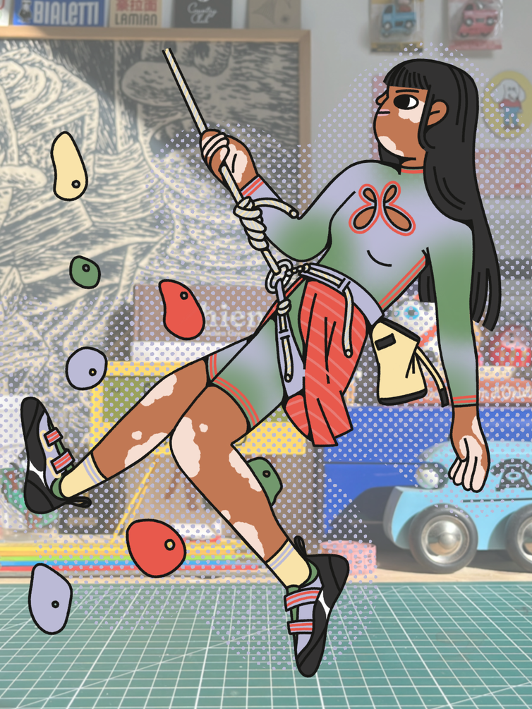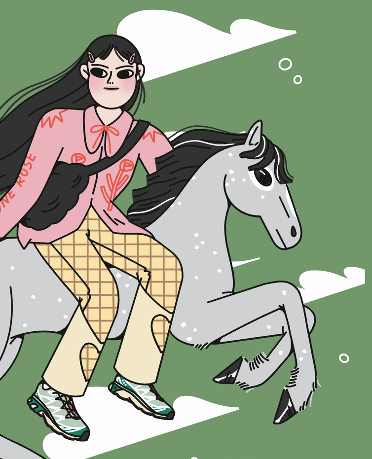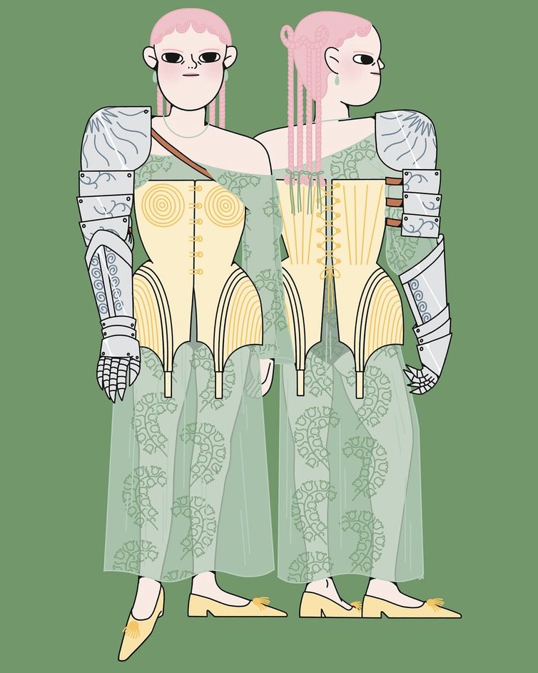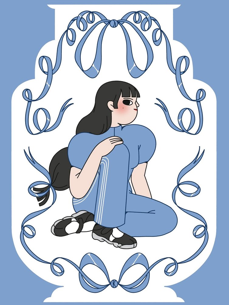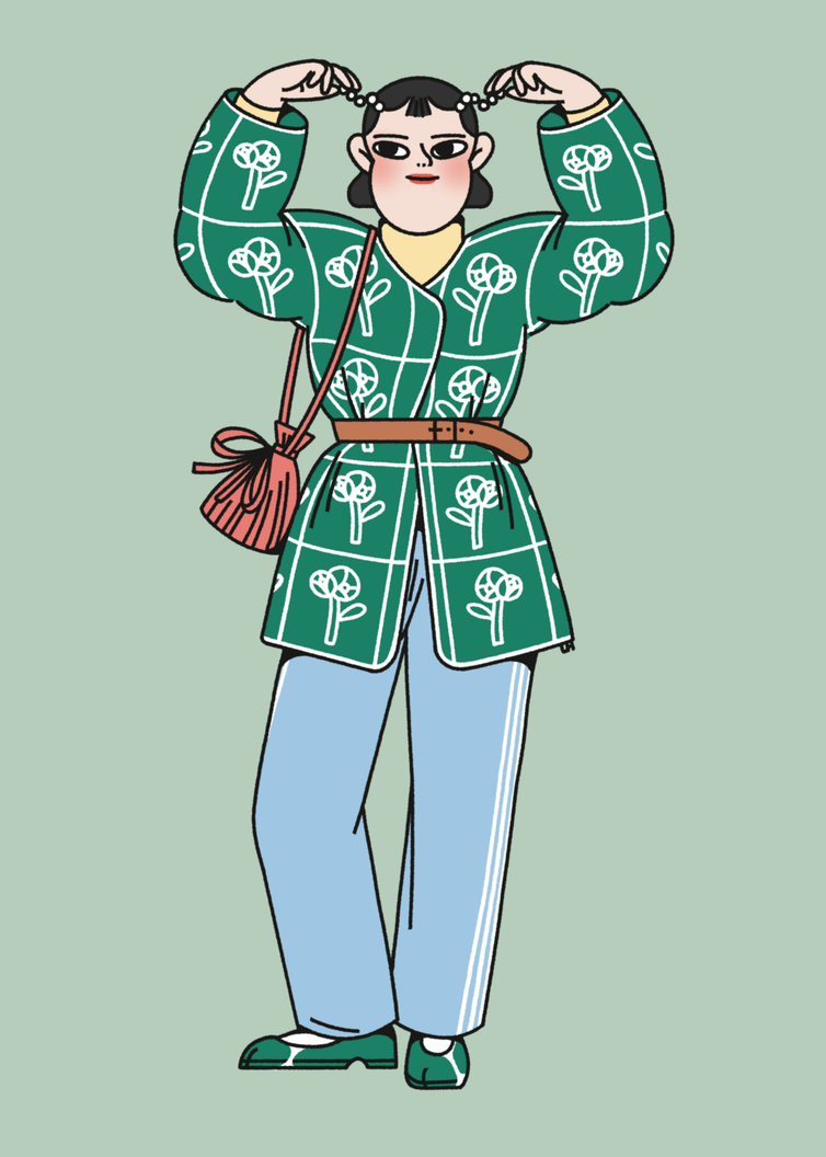 Louise Humbert est une jeune illustratrice française basée à Rouen. En à peine deux ans, elle a su imposer un style doux, épuré et expressif en créant son propre univers visuel, où la mode devient un support narratif à part entière. Dans un esprit qui évoque le travail de Yoshimoto Nara et Radical Suzuki, la panoplie de ses personnages, aux joues généreuses et aux grands yeux mi-naïfs, mi-rebelles, se collectionnent comme des figurines dont on pourrait changer les tenues, coupes et positions selon nos envies ou besoins narratifs.