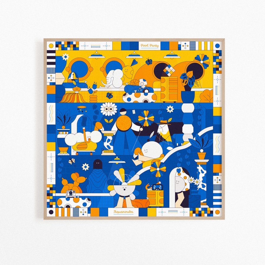 Looki Look is available as an interactive exhibition in 80×80 cm format, and soon as a boxed game in 30×30 cm format.