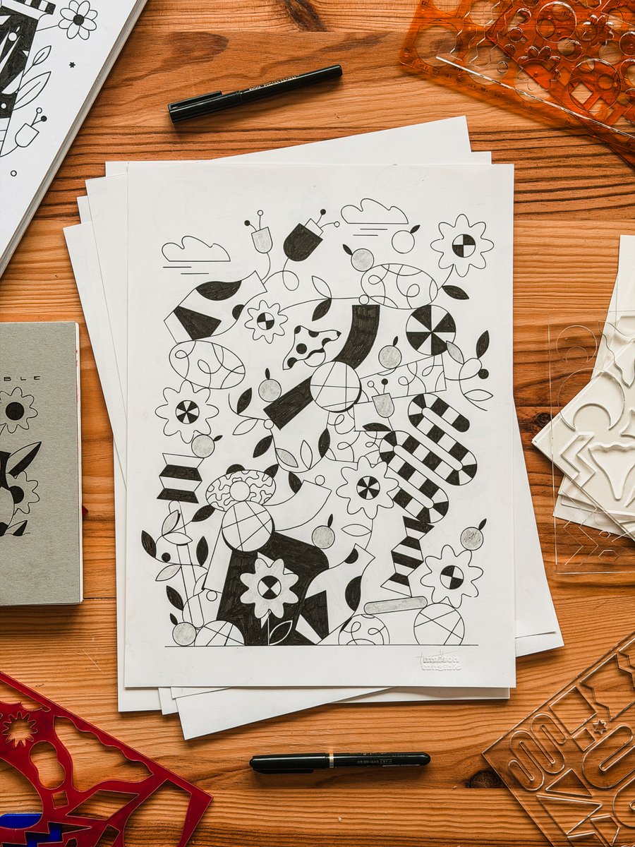 Maison Tangible est un atelier où l’expérimentation graphique rencontre la curiosité technologique. Fondé par Aurélien Jeanney, directeur artistique et artiste pluridisciplinaire, ce laboratoire explore toutes les manières de donner vie à l’image qu’elle soit imprimée, animée ou augmentée. Avec lui, l’illustration n’est pas figée, les formes et les couleurs dialoguent avec justesse, dans une recherche constante d’équilibre et de mouvement.