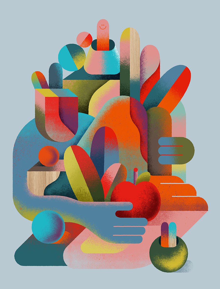 Depuis 8 ans, en parallèle de sa carrière de graphiste très inspiré, Mathieu sculpte et colorie des formes plus ou moins abstraites voire enfantines, pour le plaisir. Ce qui relevait du gribouillage se structure et s'affine jusqu'à constituer un ensemble au style très homogène et particulièrement singulier. De l'Art brut et gentil à la fois... On adore !