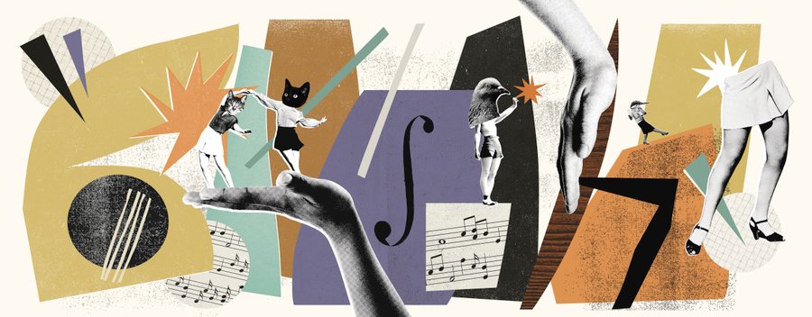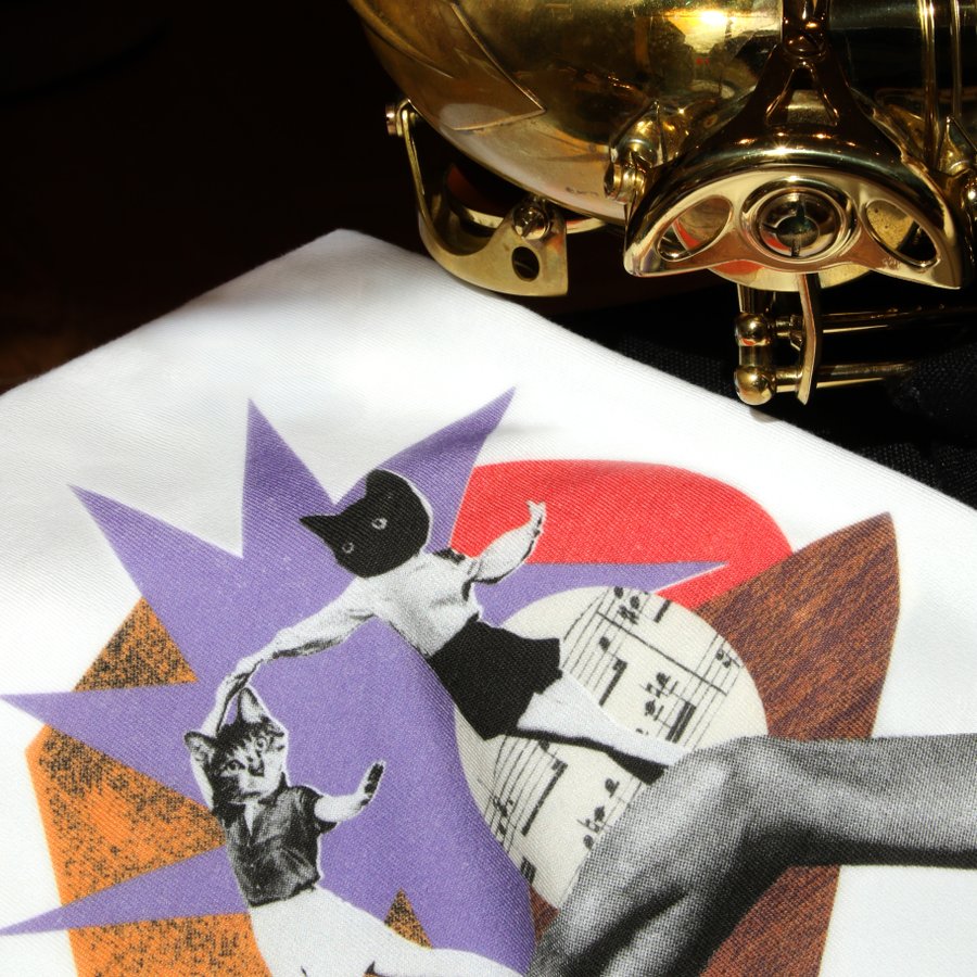 "On these blocks, collage figures—such as bird-musicians—come to “dance,” recalling the artistic and surrealist avant-garde who frequented these venues and brought them to life. The cut-out elements function as accents, evoking jazz and improvisation. I also had the idea of adding retro-style feet along the steps to honor the memory of those who walked in this place back in the day.”