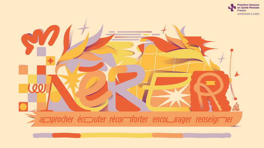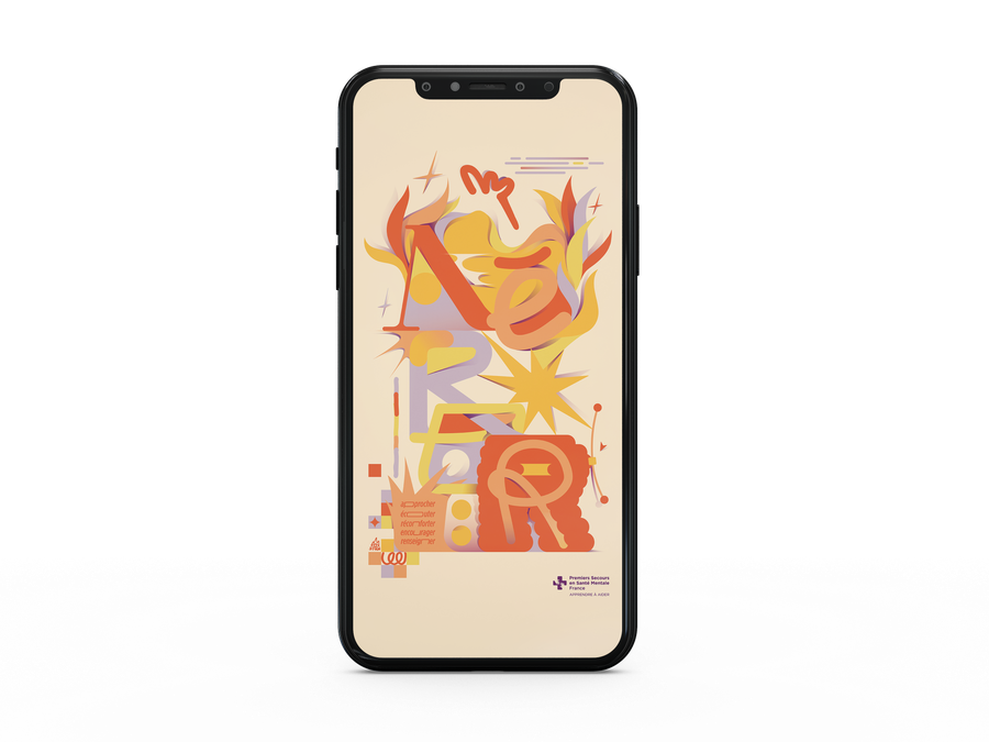Wallpapers created to help first-aiders of Premiers Secours en Santé Mentale adopt AÉRER - acronym for Approcher (Approach), Écouter (Listen), Réconforter (Comfort), Encourager (Encourage), Renseigner (Inform) - on a daily basis