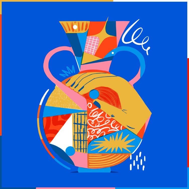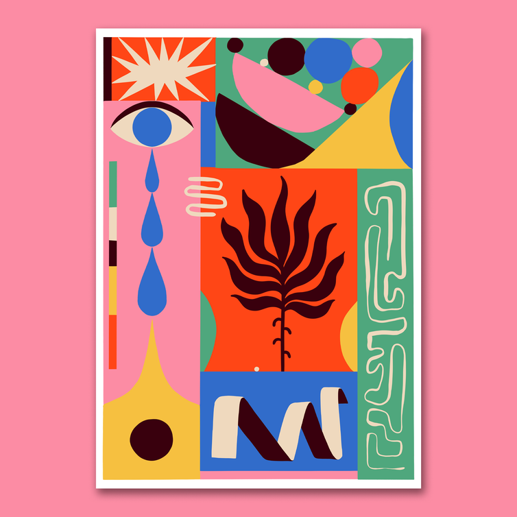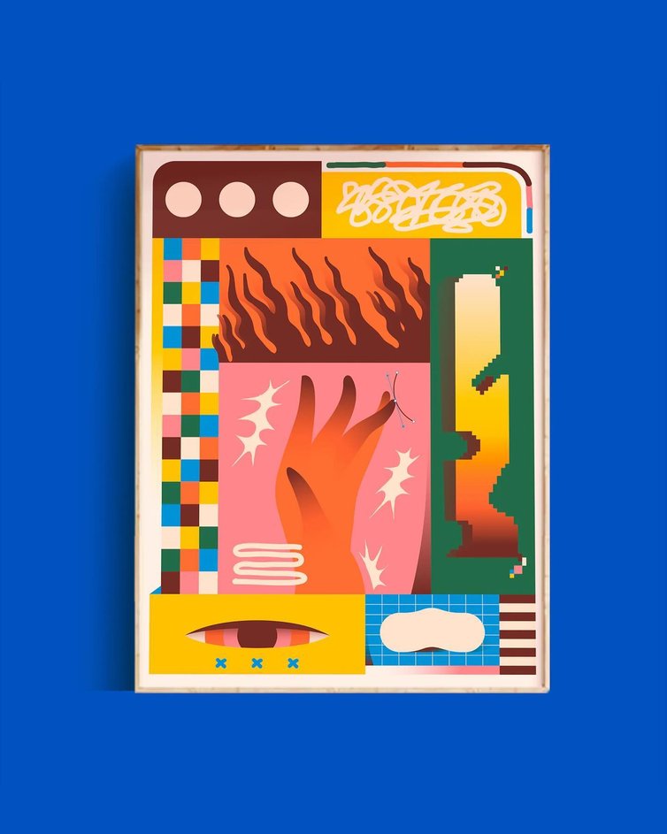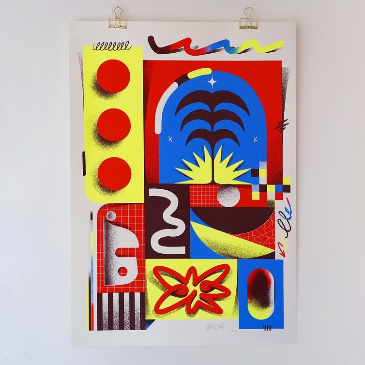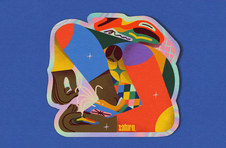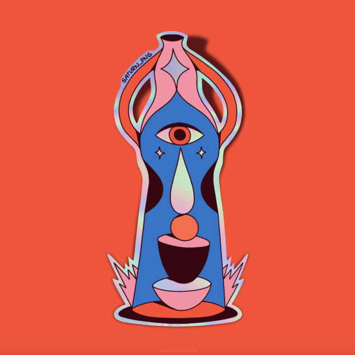 Hermann Koudou, plus connu sous le nom de Saturn, est un illustrateur et graphiste français. Ses compositions sont des assemblages iconographiques combinant formes simples et des couleurs vives, créant ainsi des motifs symboliques évoquant un ésotérisme moderne sous acide. Mêlant abstraction et figuration, son traité se prête aussi bien à l’illustration pure qu’à la sérigraphie ou l’animation voir même à la création de tapis. Il qualifie son Art de primitif, c’est probablement parce que c’est un créatif intuitif qui fait des hiéroglyphes modernes.